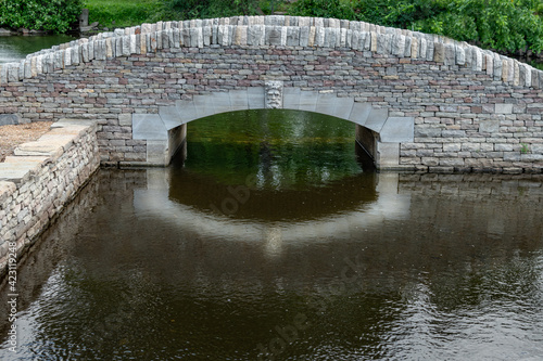 Fototapeta premium Footpath bridge over a meandering river with reflection