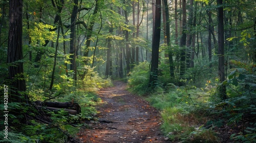 © TheWaterMeloonProjec, Obraz premium Footpath in the forest glimpsed