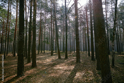 Naklejka premium footpath in the green morning woods forest Ukraine