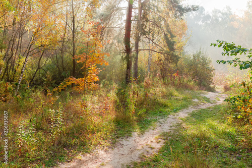 © An-T, Obraz premium Footpath in the morning autumn forest