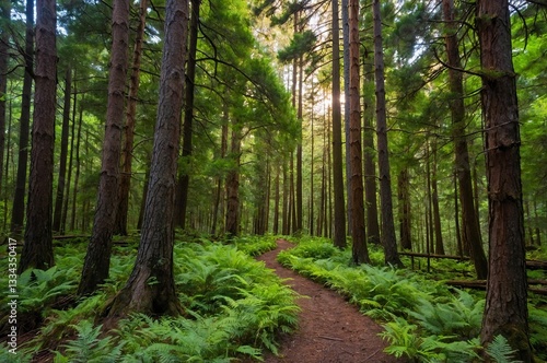 © Ilyas, Obraz premium footpath in the woods