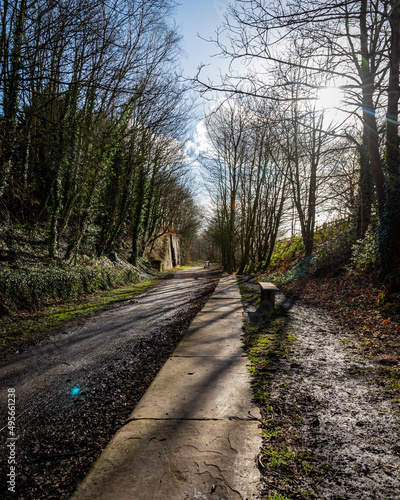 © Nathan P Taylor, Fototapeta premium footpath in the woods on a winter day