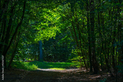 © Naj, Obraz premium Footpath through a sunny forest in autumn
