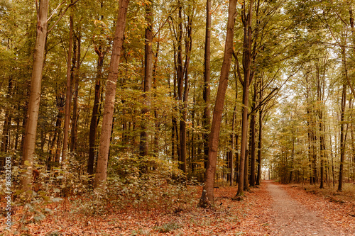 © amelie, Fototapeta premium Footpath through beech forest in fall colors