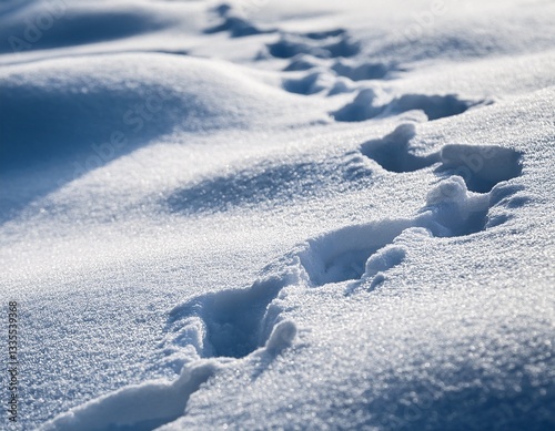 © Vexmaster, Obraz premium footprints in the snow, footprints on a thick pile of snow