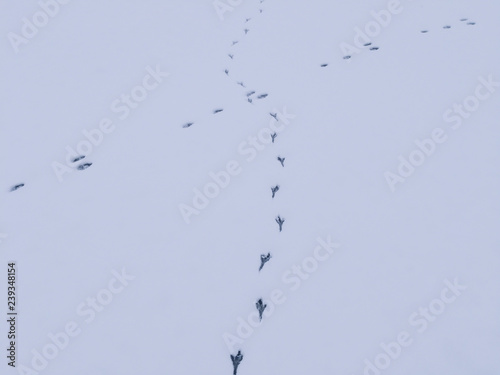 © Karolis, Obraz premium Footprints of a hare and a bird in the snow