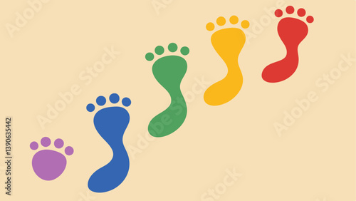 Fototapeta premium Footprints on a Path Various footprints along a path that represent different journeyssome large some small and some of varying colorsindicating the unique journeys of gender