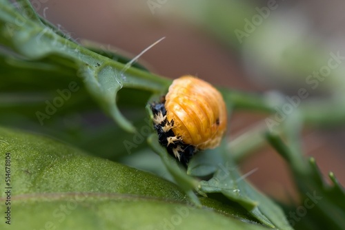 Fototapeta premium For Europe, the invasive beetle Harmonia axyridis - Asian ladybeetle, larva. Macro.