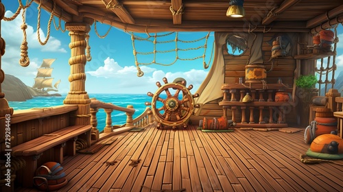 Fototapeta premium for kids pirate ship deck empty background 3D cartoon