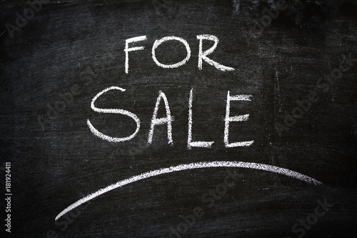 © levanda, Obraz premium For Sale Business Slogan On Black Chalkboard