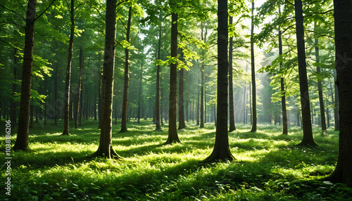 © SolarisKG, Fototapeta premium Forêt enchantée baignée de lumière