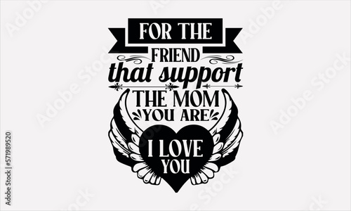 Fototapeta premium For The Friend That Support The Mom You Are I Love You - Mother's svg design , Hand written vector , Hand drawn lettering phrase isolated on white background , Illustration for prints on t-shirts.