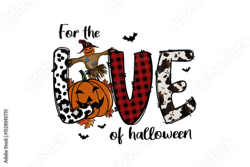 © Lemon, Obraz premium For the LOVE of Halloween – Plaid Lettering with Witch Elements Sublimation Design