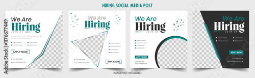 © Pritom, Fototapeta premium For the position of social media post banner design template in red, we are hiring. A position as a square web banner designer is open. notice of a vacancy in the workforce. isolated illustration