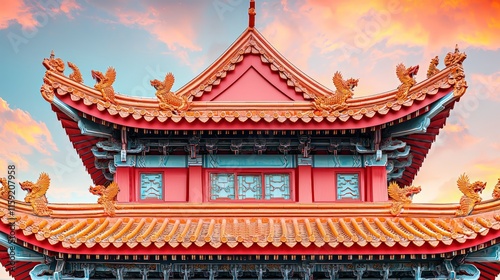 Naklejka premium Forbidden City Rooftops with Golden Dragon Figurines
