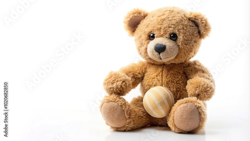 © beng, Fototapeta premium Forced perspective teddy bear playing with ball isolated on white background