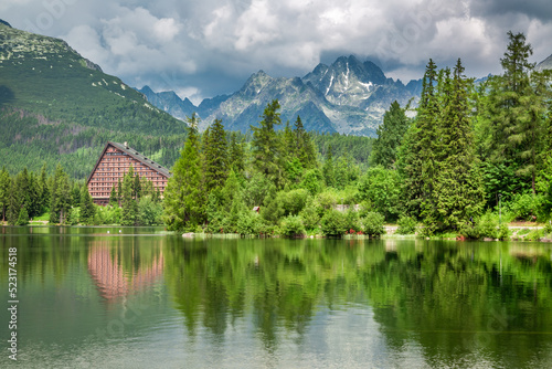 © shaiith, Fototapeta premium Forest and mountain lake in Strbske Pleso in Slovakia