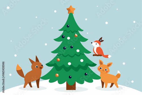 Naklejka premium forest animals decorating a pine tree with natural