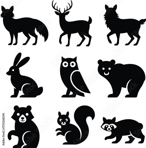 Fototapeta premium Forest animals silhouette Bundle deer wolf