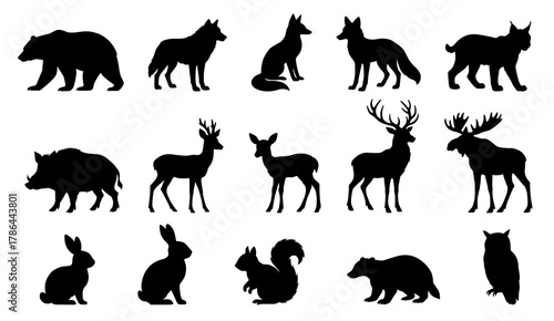 Obraz premium Forest animals silhouettes set. Flat illustrations of wild animals.