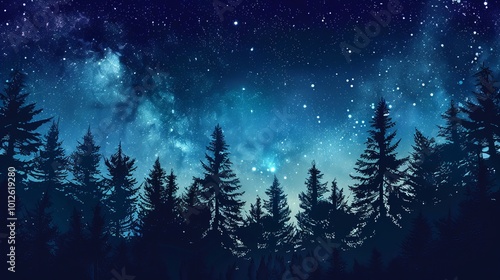 Naklejka premium Forest at night with a starry sky, night forest landscape