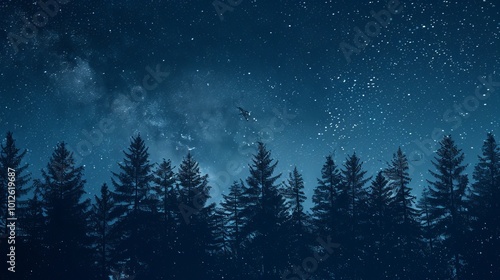 Fototapeta premium Forest at night with a starry sky, night forest landscape