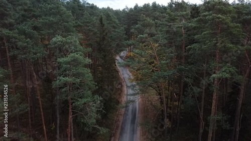 Obraz premium forest autumn summer blue sky clouds water road nature