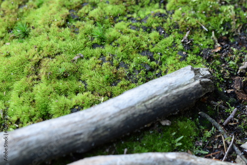 Fototapeta premium Forest background with moss and branches, natural green background.