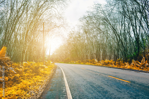 © Thanaphon, Fototapeta premium Forest beside the highway in autumn