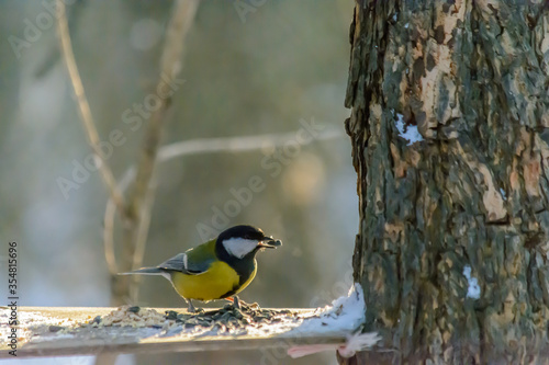© Карим Татаринов, Fototapeta premium Forest birds live near the feeders in winter