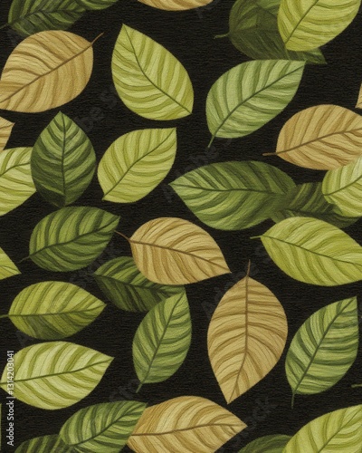 © Tanarak, Obraz premium Forest canopy bursting with new green leaves against a dark background creating a striking natural contrast