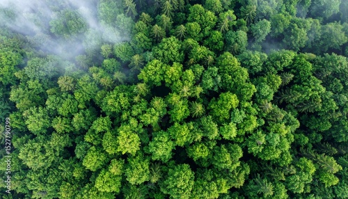 Naklejka premium Forest Canopy with Morning Mist