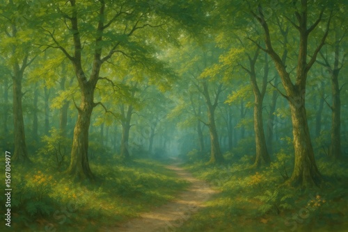© VirtualVista, Obraz premium Forest close to the seaside town