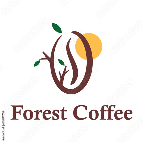 © aldonat, Obraz premium forest coffee flat minimalist logo design