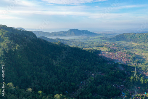Naklejka premium Forest-Covered Mountain Slopes Casting Shadows Over the Valley