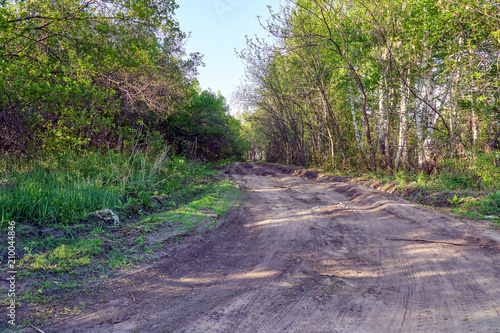 Fototapeta premium Forest dirt road in summer. Forest landscape