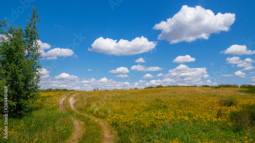 Fototapeta premium Forest dirt roads among trees and fields