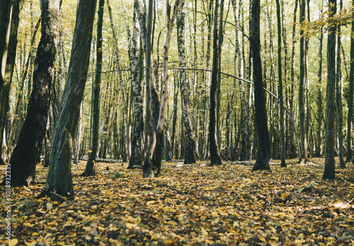 Obraz premium Forest during sunny day on the beginning of fall season