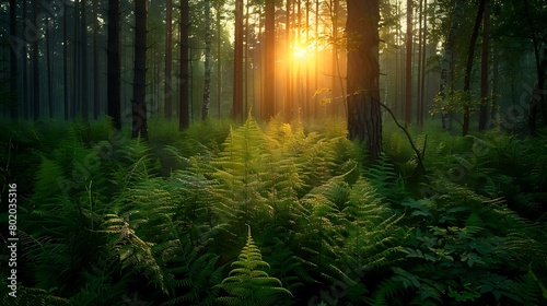 Fototapeta premium Forest Ferns Midsummer Night Scene - Green Foliage in Natural Setting