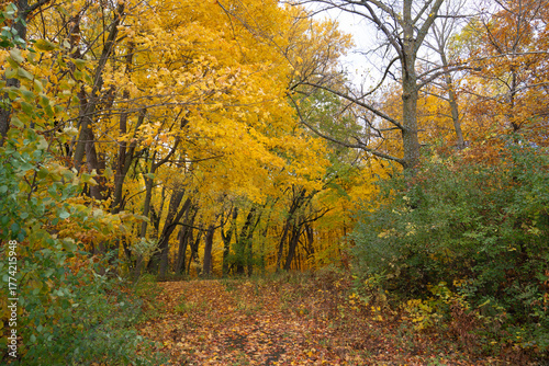 Obraz premium Forest filled with vibrant autumn leaves on trees