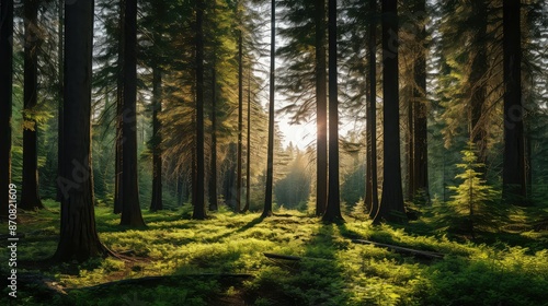 © vectorwin, Fototapeta premium forest fir needle essential oil