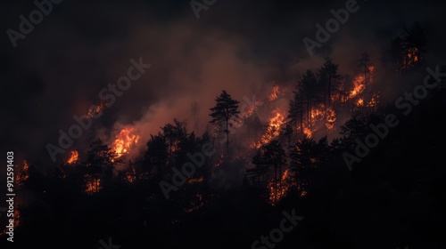Naklejka premium Forest Fire at Night with Trees Ablaze in a Fiery Inferno