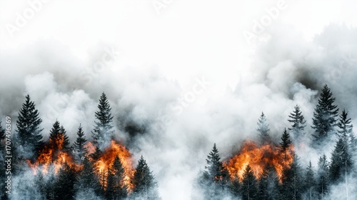 © Tanyastock, Obraz premium Forest fire flames and heavy smoke – environmental catastrophe and climate alert
