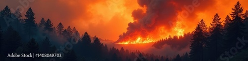© vilavanh, Naklejka premium Forest fire with smoke rising high in the sky, inferno, chaos