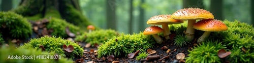 © Withun, Obraz premium Forest floor covered with a thick layer of mushrooms, floor, wild plants, moss
