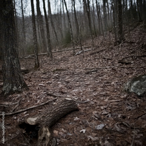 © Lapak, Obraz premium Forest floor path through leaf-covered woods