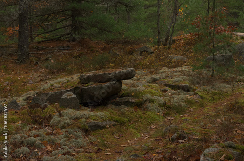 © Cavan, Obraz premium forest floor piled rocks path fall leaves