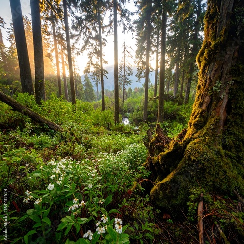 © Dil, Fototapeta premium Forest floor, sunlight, wildflowers