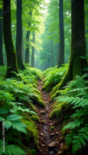 © เดือน สุขทั่วญาติ, Obraz premium forest floor with ferns and moss, dense foliage, verdant, green, greenery