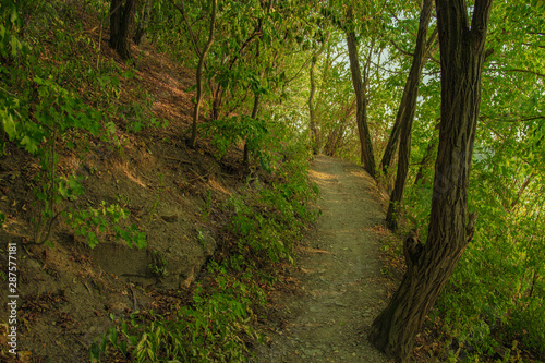 Obraz premium forest food land narrow ground lonely trail between green tree foliage